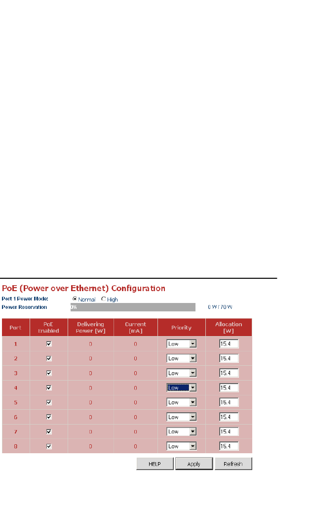 • Allocation – The configured power budget for the port. (Range: 0-15.4 watts when
