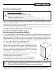 Important Safety Information General Safety ! • To prevent injuries, use at least two people to move and install the beverage refrigerator. • Install the beverage refrigerator in a well-ventilated area where the ambient temperature is above 50° F and below 90° F. • The temperature range for this refrigerator is optimized for beverage storage. Perishable food items may require a different storage environment. • Do not place hot or warm items into the refrigerator before they cool down to room temperature.