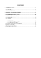 CONTENTS 1 INTRODUCTION ............................................................................. 1 1.1 1.2 1.3 F EATURES .................................................................................................... 1 S PECIFICATIONS ............................................................................................ 1 P ACKAGE C ONTENTS ..................................................................................... 2 2 INSTALLATION PROCEDURE ......................................