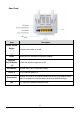 Rear Panel Item Power On/Off Button Power Wireless On/Off Button WPS Button LAN 1–4 Reset Button Line Description Switches the router on or off. Power port for included 12V power adapter. Switch the wireless signal on or off. Activate WPS (Wi-Fi Protected Setup) RJ-45 Ethernet ports 1–4. Hold for less than 5 seconds to restart the device, and hold for more than 10 seconds to reset the device to factory default settings. RJ-11 port for standard telephone line.