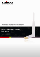 Chapter I: Product Information 1-1 Introduction and safety information Thank you for purchasing this high-speed wireless network card! Excepting common wireless standards 802.11b/g, this wireless network card is also able to access 802.11n wireless networks - data transfer rate is 150Mbps, and that’s three times faster than 802.11g wireless network! With easy-to-install USB 2.