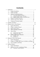 Contents 1. Introduction........................................................................................1 1.1 Product Introduction......................................................... 1 1.2 Product Package ............................................................. 2 1.3 Network Printing Architecture .......................................... 3 1.3.1 1.3.2 1.3.3 Print Server Network Functions ..........................................4 Network Printing Functions for Clients.............