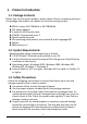 Contents 1. PRODUCT INTRODUCTION ..................................................................................................................... 5 1.1. 1.2. 1.3. 1.4. 1.5. PACKAGE CONTENTS............................................................................................................................ 5 SYSTEM REQUIREMENTS ....................................................................................................................... 5 SAFETY PRECAUTIONS .............................