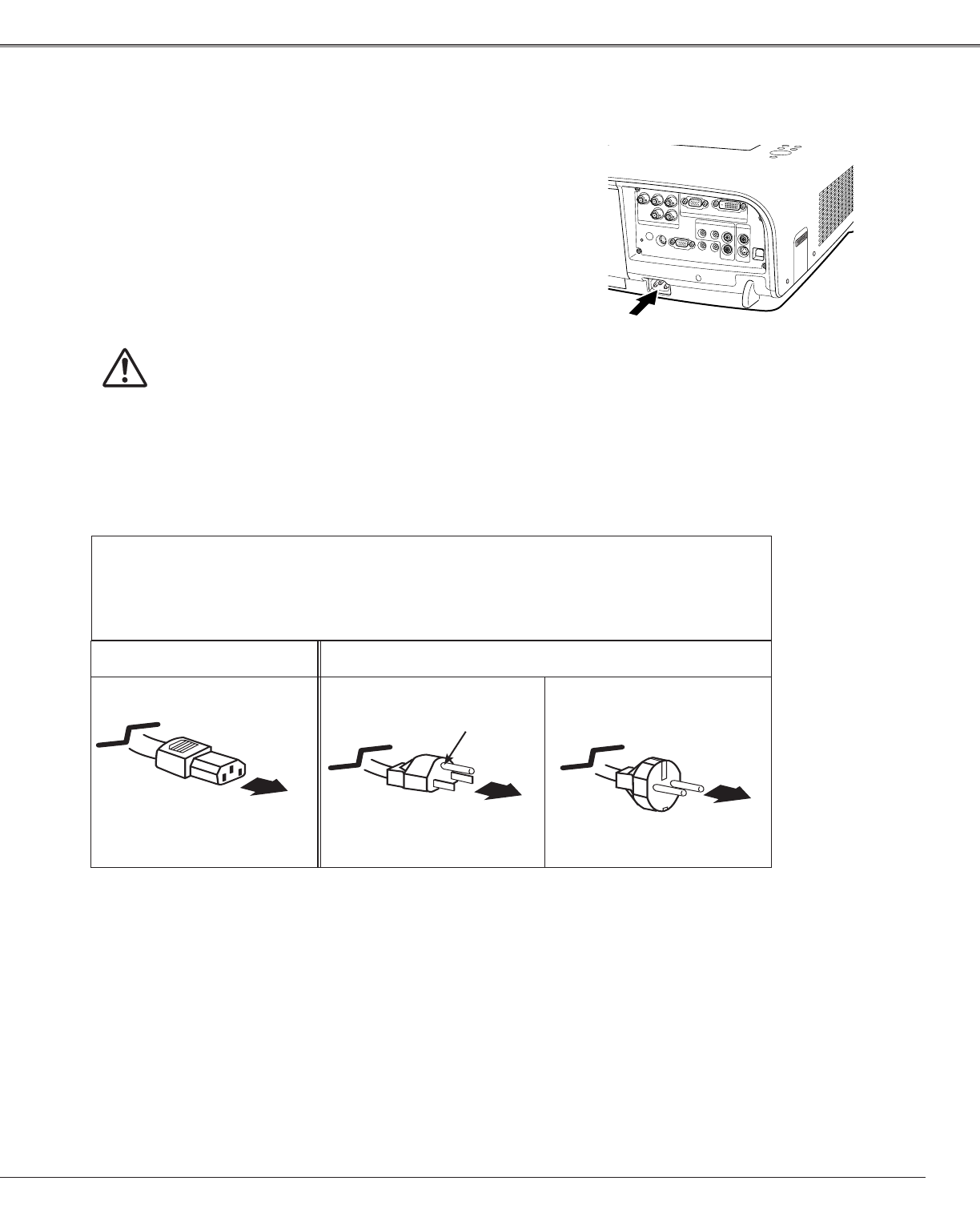 Confirm the AC plug type with the chart below and proper AC power cord must be used.
