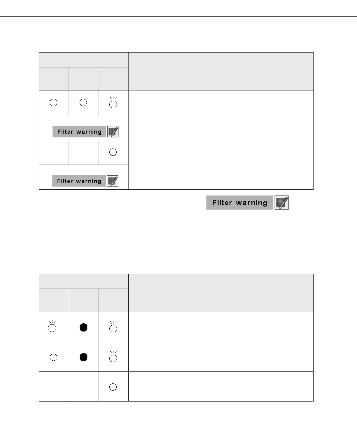 WARNING FILTER indicator and Filter warning icon will