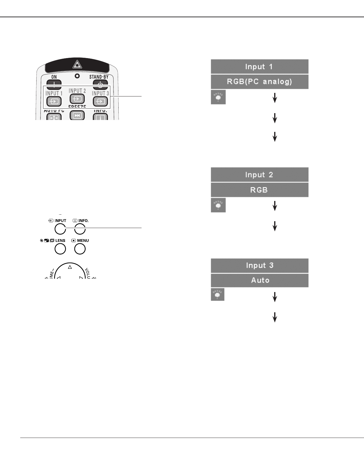 INPUT 1, INPUT 2, and INPUT 3 as you press the INPUT