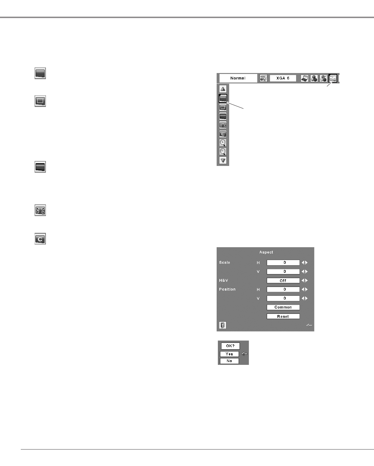 Scale H/V ........... Adjust the Horizontal/Vertical screen scale.