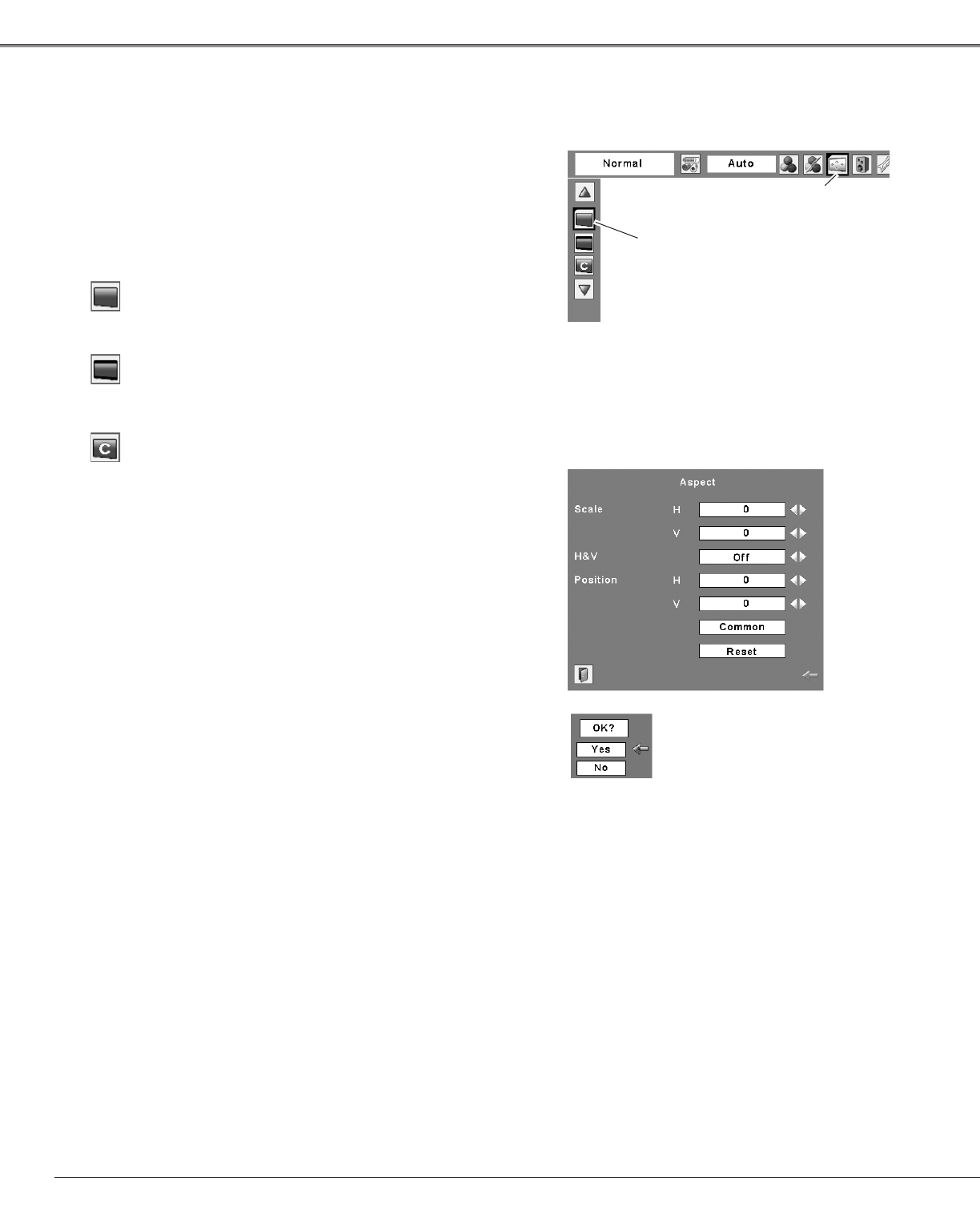Scale H/V ........... Adjust the Horizontal/Vertical screen scale.