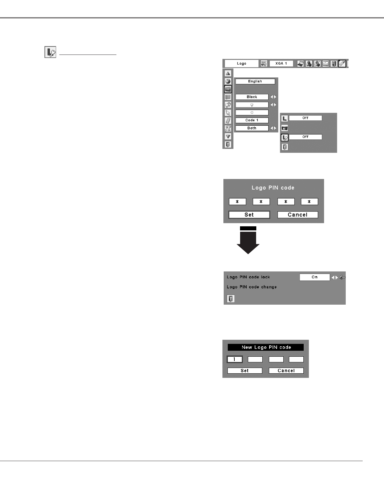 the Logo PIN code setting. For details on PIN code