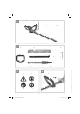 S • till vår kundtjänstavdelning. Kapacitetsindikering för batteri (bild 6a) Tryck på knappen för kapacitetsindikering för batteriet (pos. A). Kapacitetsindikeringen (pos. B) visar batteriets laddningsnivå med tre lysdioder. Klipp häckens sidor med svängande rörelser nedifrån och upp (se bild 10). 7. Rengöring, Underhåll och reservdelsbeställning Alla tre lysdioder är tända Batteriet är fulladdat. Fara! Koppla ifrån häcksaxen och dra ut batteriet innan du ställer undan och rengör den.