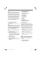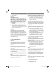FIN Huomio! Jäämäriskit Silloinkin, kun käytät tätä sähkötyökalua määräysten mukaisesti, jää jäljelle aina tietty jäämäriski. Tämän sähkötyökalun rakenteesta ja mallista riippuen saattaa esiintyä seuraavia vaaroja: 1. kuulovaurioita, ellei käytetä soveliaita kuulosuojaimia. 2. terveydellisiä haittoja, jotka aiheutuvat kädenkäsivarren tärinästä, jos laitetta käytetään pitemmän aikaa tai sitä ei käsitellä ja huolleta määräysten mukaisesti.