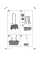 DK/N 5. Inden ibrugtagning • 5.1 Samling • Førehåndtag • Sæt førehåndtagets nederste stænger fast i materialebeholderen (fig. 3). • Sæt den øverste del af førehåndtaget på de nederste stænger (fig. 4). • • Justerarm Sæt grebet til justerarmen (fig. 2/pos. 2) på justerarmen (fig. 5/pos. A). Støttefod Tag skruen (fig. 7/pos. B) ud. Stik støttefoden (fig. 8/pos. 5) ind, og skru den fast. • • • Hjul Tag hjulkapperne af hjulene (fig. 9). Tag skruerne (fig. 10/pos. E) ud (i begge sider).