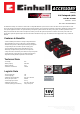 The Einhell PXC battery 4.0 Ah with two universal 18 V rechargeable batteries is part of the PXC series and offers twice the power with li-ion cells.