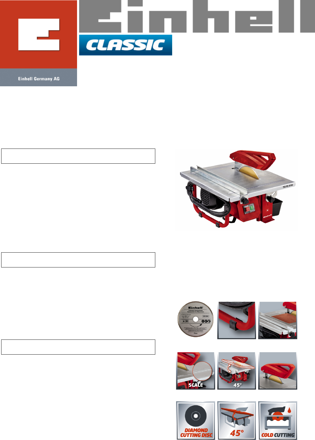 table comes with a secure support for guiding standard tile sizes. For clean miter cuts it can also be tilted and has an easy-to-read angle scale. Simple