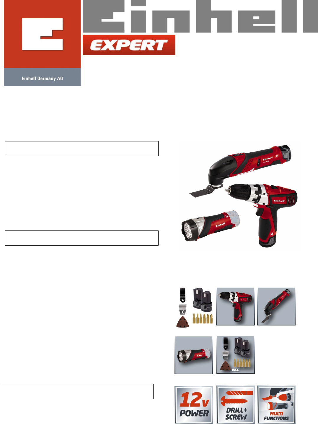 - Incl. accessories: bits, blade, scraper, sanding disk, abrasive paper