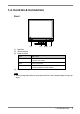 1-4. Controls & Connectors Front (1) (1) (2) (3) (2) (3)(4) (1) Speakers Volume Control Power Indicator Color 620L status Green • Operation • Screen saver mode Yellow Off Power save mode • Suspend mode (Wake on LAN standby) • Power off (Wake on LAN standby) (4) Power button NOTE • When turning off/on the unit, leave the unit off for a few seconds before turning it on again. 1.