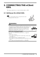 2. CONNECTING THE eClient 620L This chapter explains how to connect the eClient 620L to a WTS. 2-1. Setting up the eClient 620L NOTE • Before connecting the product, set up the monitor after unfolding the base of the stand. WARNING Place the eClient 620L on a strong, stable surface. A unit placed on an inadequate surface may fall, resulting in injury or equipment damage. If the unit falls, disconnect the power immediately and have the unit checked by a qualified service engineer before using it again.