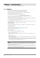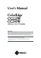 Chapter 1 Introduction Thank you very much for choosing an EIZO Color Monitor. 1-1. Features • • • • • 22” wide format LCD (CG223W) / 24” wide format LCD (CG243W) Wide color gamut of 95% of Adobe RGB (CG223W) / 98% (CG243W) Resolution 1680 dots x 1050 lines (CG223W) / 1920 dots x 1200 lines (CG243W) HDCP (High-bandwidth Digital Content Interface) Frame Synchronous mode supported : 47.5 - 61Hz (CG223W) : 23.75 - 30.5Hz, 47.