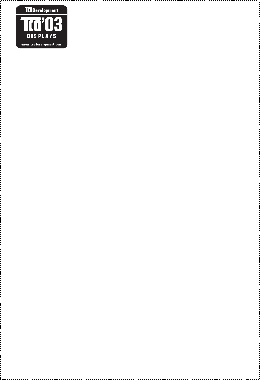 The display you have just purchased carries the TCO’03 Displays