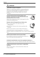 Deutsch 8. REINIGUNG Um den Monitor immer wie neu aussehen zu lassen und die Lebensdauer des Geräts zu verlängern, wird eine regelmäßige Reinigung empfohlen. HINWEIS z Verwenden Sie niemals Verdünner, Benzol, Alkohol (Ethanol, Methanol oder Isopropyl-Alkohol), Scheuermittel oder andere starke Lösungsmittel, da diese Schäden am Gehäuse und am LCD-Display verursachen könnten.
