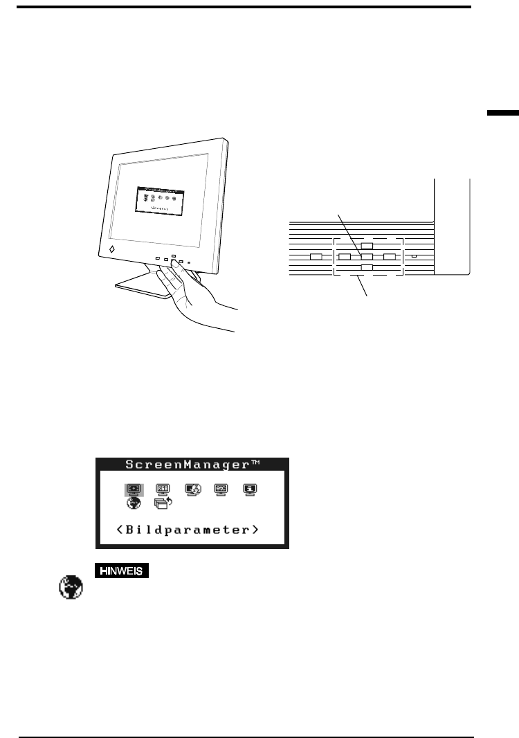 Justage der Bildschirmanzeige. Die Justagemaßnahmen können mit Hilfe