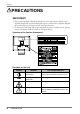 English CAUTION Use an easily accessible power outlet. This will ensure that you can disconnect the power quickly in case of a problem. Periodically clean the area around the plug. Buildup of dust, water, or oil on the plug may result in fire. Unplug the unit before cleaning it. Cleaning the unit while it is plugged into a power outlet may result in electric shock.