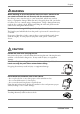 English WARNING If the unit begins to emit smoke, smells like something is burning, or makes strange noises, disconnect all power connections immediately and contact your dealer for advice. Attempting to use a malfunctioning unit can be dangerous. Do not dismantle the cabinet or modify the unit. Dismantling the cabinet or modifying the unit may result in electric shock or burn. Refer all servicing to qualified service personnel.