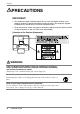 English PRECAUTIONS IMPORTANT! • This product has been adjusted specifically for use in the region to which it was originally shipped. If operated outside the region to which it was originally shipped, the product may not perform as stated in the specifications. • To ensure personal safety and proper maintenance, please read this section and the caution statements on the unit (refer to the figure below).