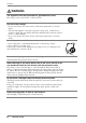 English LCD Panel The screen may have defective pixels. These pixels may appear as slightly light or dark area on the screen. This is due to the characteristics of the panel itself, and not the product. The backlight of the LCD panel has a fixed life span. When the screen becomes dark or begins to flicker, please contact your dealer. Do not press on the panel or edge of the frame strongly, as this will result in damage to the screen.
