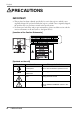 English PRECAUTIONS IMPORTANT! x This product has been adjusted specifically for use in the region to which it was originally shipped. If operated outside the region to which it was originally shipped, the product may not perform as stated in the specifications. x To ensure personal safety and proper maintenance, please read this section and the caution statements on the unit (refer to the figure below).