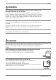 English WARNING If the unit begins to emit smoke, smells like something is burning, or makes strange noises, disconnect all power connections immediately and contact your dealer for advice. Attempting to use a malfunctioning unit can be dangerous. Do not dismantle the cabinet or modify the unit. Dismantling the cabinet or modifying the unit may result in electric shock or burn. Refer all servicing to qualified service personnel.