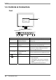 English Rear (13) (14) (15) Bottom (9) (10) (11) (12) (9) Power Connector Connect the power cord. (10) DVI-D Connector (SIGNAL1) Connect the optional digital cable. (11) D-Sub mini 15 pin Connector (SIGNAL2) Connect the enclosed analog cable (MDC87) (12) RS-232C port Connect the enclosed touch panel cable (FD-C38). (13) Hole for TP1 (14) Hole for installing the lead of the TP1 (Optional Touch Panel Pointer).