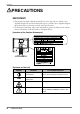 English PRECAUTIONS IMPORTANT! x This product has been adjusted specifically for use in the region to which it was originally shipped. If operated outside the region to which it was originally shipped, the product may not perform as stated in the specifications. x To ensure personal safety and proper maintenance, please read this section and the caution statements on the unit (refer to the figure below).