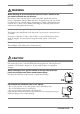 English SAFETY SYMBOLS This manual uses the safety symbols below. They denote critical information. Please read them carefully. WARNING Failure to abide by the information in a WARNING may result in serious injury and can be life threatening. CAUTION Failure to abide by the information in a CAUTION may result in moderate injury and/or property or product damage. Indicates a prohibited action. Indicates to ground for safety.