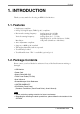 English TABLE OF CONTENTS PRECAUTIONS ................................................................................... 4 1. INTRODUCTION ..................................................................................... 9 1-1. Features ........................................................................................................9 1-2. Package Contents..........................................................................................9 1-3. Controls & Connectors .......................