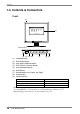 English Rear (10) (11) (12) Bottom (13) (14)(15)(16) (10) (11) (12) (13) (14) (15) (16) (17) *3 *4 *5 (17) Height Adjustable Stand (Detachable)*3 Power Terminal Covers for the Optional peripheral Security Lock Slot*4 D-Sub mini 15 pin Connector (SIGNAL 1) DVI-I Connector (SIGNAL 2) USB Port (1 Upstream) *5 USB Port (2 Downstreams) Power Connector The LCD monitor has the capability of the Portrait/Landscape display. (The panel pivots in the clockwise direction 90°), see p. 35.