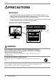 English PRECAUTIONS IMPORTANT! • This product has been adjusted specifically for use in the region to which it was originally shipped. If operated outside the region to which it was originally shipped, the product may not perform as stated in the specifications. • To ensure personal safety and proper maintenance, please read this section and the caution statements on the unit (refer to the figure below).