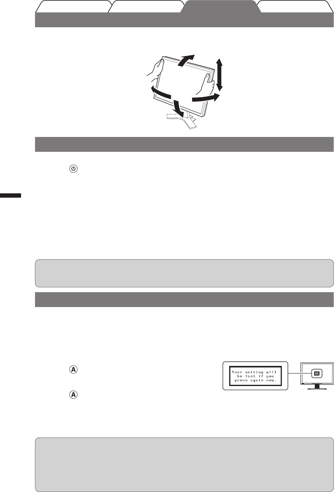 Sujete el monitor con las manos por ambos lados para regular la altura, la inclinación y el giro de la pantalla y conseguir