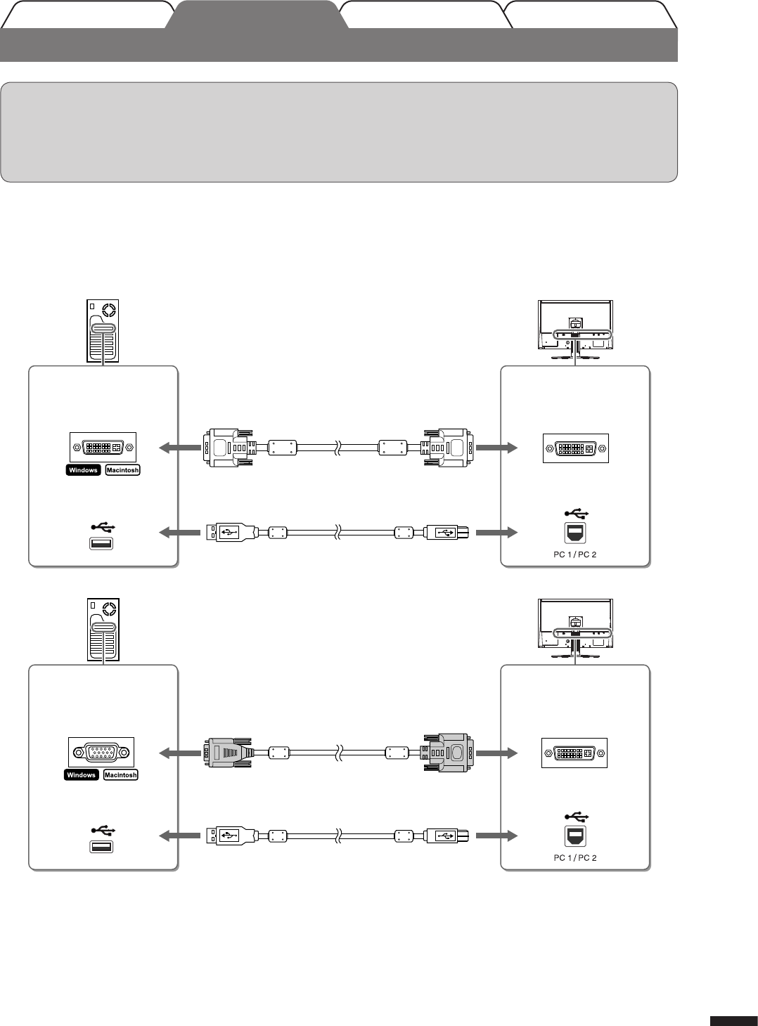 将两台个人计算机连接到显示器上时,请参阅 EIZO LCD Utility Disk(CD-ROM) 上的用户手册。