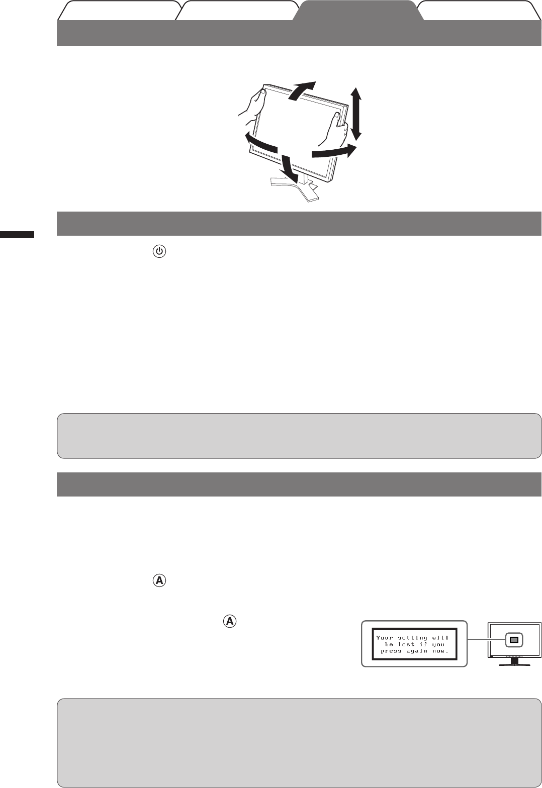 Placez vos mains des deux côtés du moniteur et réglez la hauteur, l’inclinaison et l’orientation de l’écran dans une