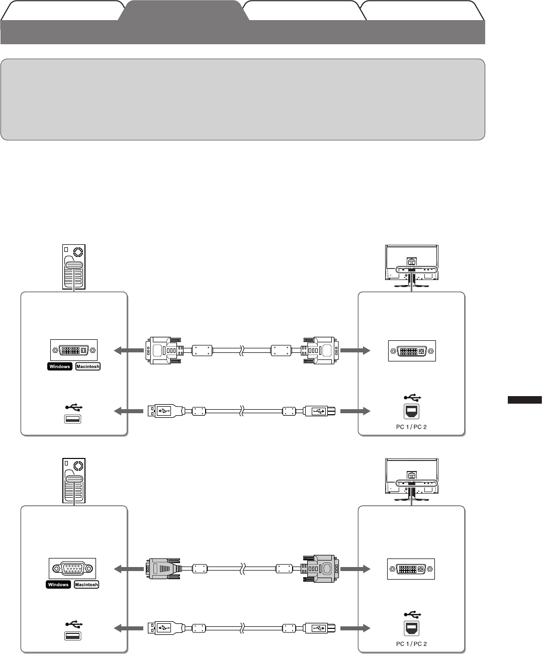 • Per collegare due PC al monitor, fare riferimento al Manuale utente su EIZO LCD Utility Disk (CD-ROM).