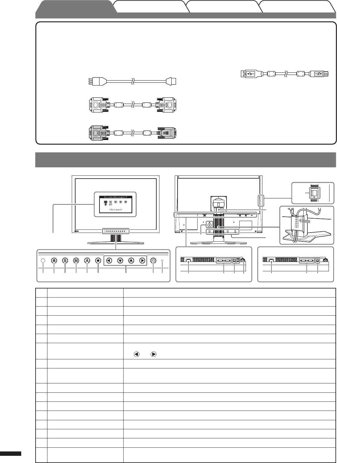 13 USB端口(上) 使用USB电缆将个人计算机连接到显示器。