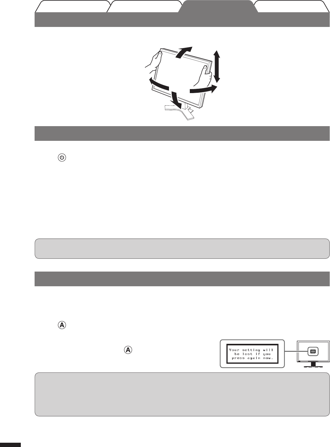 用双手抓住显示器的左右两边,调节屏幕高度,将屏幕倾斜并转动到最佳工作状态。