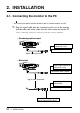 2. INSTALLATION 2-1. Connecting the monitor to the PC • Be sure that the power switches of both of the PC and the monitor are OFF. 1. Plug the signal cable into the connector at the rear of the monitor and the other end of the cable into the video connector on the PC. After connecting, secure the connection with the screw-in fasteners.
