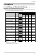 5. Referenz Pin-Belegung •DVI-D-Anschluss 1 2 3 4 5 6 7 8 9 10 11 12 13 14 15 16 17 18 19 20 21 22 23 24 SIGNAL1 : Gilt für DualLink Pin No. Signal 1 2 3 4 5 6 7 T.M.D.S. Data 2T.M.D.S. Data 2+ T.M.D.S. Data2/4 Shield T.M.D.S. Data 4T.M.D.S. Data 4+ DDC Clock (SCL) DDC Data (SDA) 8 NC* Pin No. 9 10 11 12 13 14 15 16 Signal T.M.D.S. Data1T.M.D.S. Data1+ T.M.D.S. Data1/3 Shield T.M.D.S. Data 3T.M.D.S. Data 3+ +5V Power Ground (return for +5V, Hsync and Vsync) Hot Plug Detect Pin No.