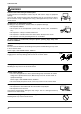 PRECAUTIONS WARNING When attaching an arm stand, please refer to the user's manual of the arm stand and install the unit securely. Not doing so may cause the unit to come unattached, which may result in injury or equipment damage. When the unit is dropped, please ask your dealer for advice. Do not continue using a damaged unit. Using a damaged unit may result in fire or electric shock. When reattaching the tilt stand, please use the same screws and tighten them securely.
