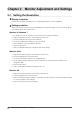 2-4. Resetting Brightness (Brilliance) Reset the setting value for the screen brightness (brilliance) to the default setting. Attention • Settings cannot be recovered once this function is executed. Procedure 1. Press while holding down or on the front of the monitor. The setting value for the screen brightness (brilliance) is reset to the default setting. 2-5. Displaying Monitor Information Display the input connector, input signal, and resolution. Procedure 1. Press on the front of the monitor.