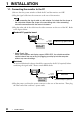 1 INSTALLATION 1-1. Connecting the monitor to the PC 1) Be sure that the power switches of both the PC and the monitor are OFF. 2) Plug the signal cable into the connector at the rear of the monitor. • When connecting the signal cable or cable adapter, first check that the shape at the cable side matches the shape at the connecting side. After connecting, secure the connection with the screw-in fasteners. 3) Plug the other end of the cable into the video connector on the rear of the PC.