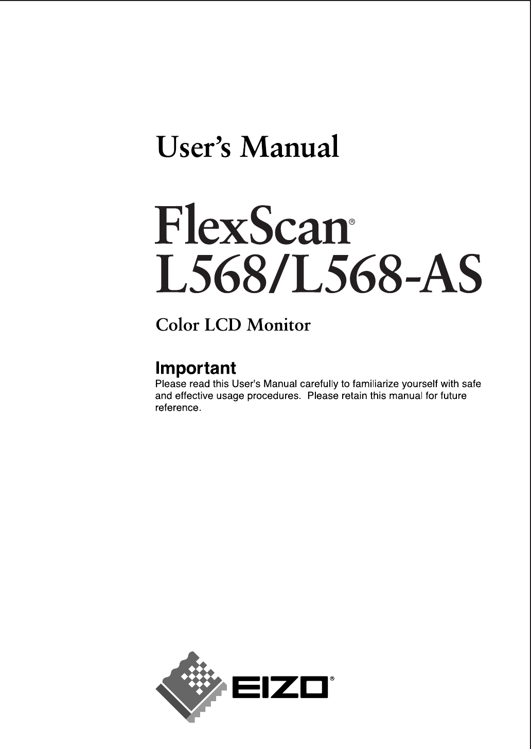 For U.S.A, Canada, etc. (rated 100-120 Vac) Only FCC Declaration of Conformity We, the Responsible Party EIZO NANAO TECHNOLOGIES INC. 5710 Warland Drive, Cypress, CA 90630 Phone: (562) 431-5011 declare that the product Trade name: EIZO Model: FlexScan L568/L568-AS is in conformity with Part 15 of the FCC Rules.