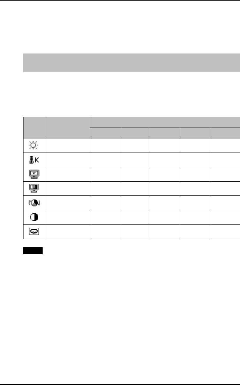Color settings of each FineContrast mode can be adjusted and saved by using the